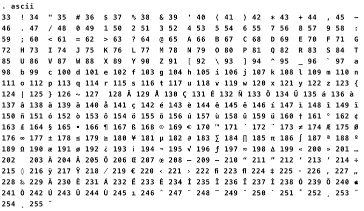 , end=) ch = input() chlen = len(ch) if chlen==1: Write a program in python for: Write a python program to get the ascii value of a character. We will do this by checking ascii values of each character present in the . Generating alphabet a to z with ascii code in python using for loopascii character : Ascii_lowercase and ascii_uppercase from string package can be used to get all uppercase and lowercase alphabets. We are using the chr() function to convert the ascii value to the character. Here we have used ord() function to convert a character to an integer (ascii value). This function returns the unicode code point of that character. In each iteration, call ord(c) to convert the current character c to its corresponding ascii value. Use the ascii characters table to determine the characters to use for directory server instance encryption seed and encryption salt. Ascii codes represent text in computers, telecommunications equipment, and other devices.